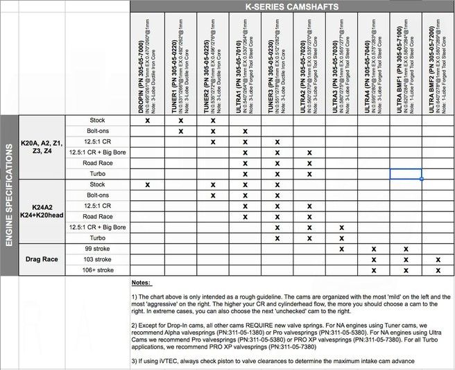Gain an extra 26-30 hp and retain your factory idle and low-speed emissions with Skunk2's Tuner Series Stage 3 Camshafts, our premier line of high-performance camshafts for Honda's K20A2-based, K-series engines. Tuner Series Stage 3 Camshafts are designed to increase power at higher rpm as well as optimize horsepower and torque on engines featuring free-flowing intake and exhaust tracts, increased compression, and upgraded valvetrain and are the result of Skunk2's years' worth of drag racing and road racing efforts. No other line of high-performance camshafts even comes close to Skunk2's Tuner Series. Skunk2 camshafts deliver unparalleled power as a result of continual, extensive development and testing. By utilizing advanced manufacturing techniques and the latest computerized simulation and modeling equipment, Skunk2 camshafts are able to deliver maximum power across the entire powerband. Skunk2 designs and tests all of its camshafts in-house to ensure the highest quality and performance. Each camshaft is manufactured from high-strength, hollow, iron-alloy cores featuring cutting-edge profiles that emphasize an exceptional idle and low emissions. All Skunk2 camshafts are ground to exact specifications using state-of-the-art CNC cam grinding machines equipped with cubic-boron grinding wheels and feature hardened, wear-resistant lobes and surfaces. Skunk2's Tuner Series Camshafts for K20A2-based, K-series engines also feature Fast Ramp and AMAX profile technology, which increases overall performance and results in unmatched response from idle to redline. AMAX technology simply maximizes the area under the lift curve but without compromising reliability or valvetrain stability. Skunk2's profiles feature more duration than competitors' at lifts above 1mm, resulting in greater efficiency and more power. And thanks to Fast Ramp, the same technology used in Formula One racing, seat timing is reduced